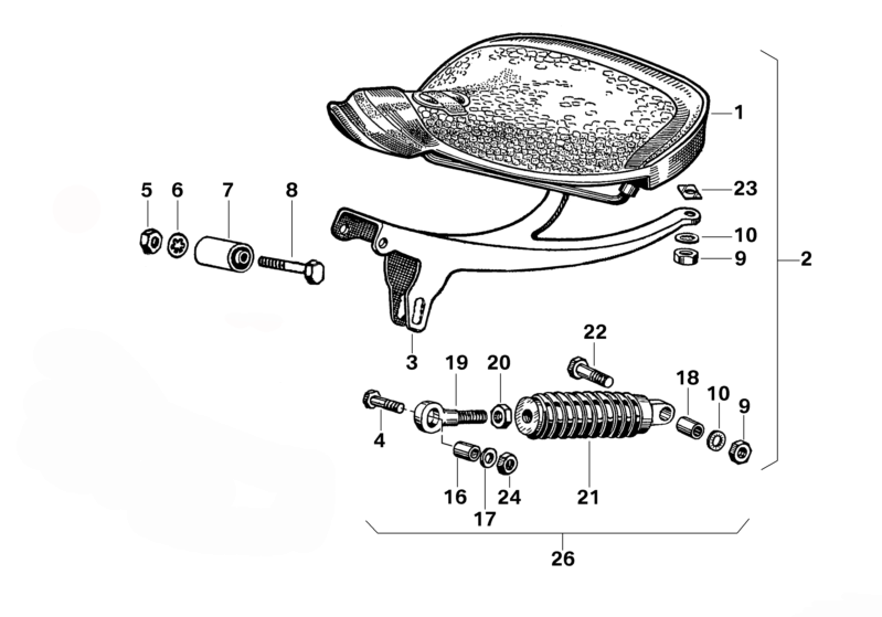 | 2 | 52517002009.F | Saddle, frame & chrome spring | 10 mm bolt | 1 |