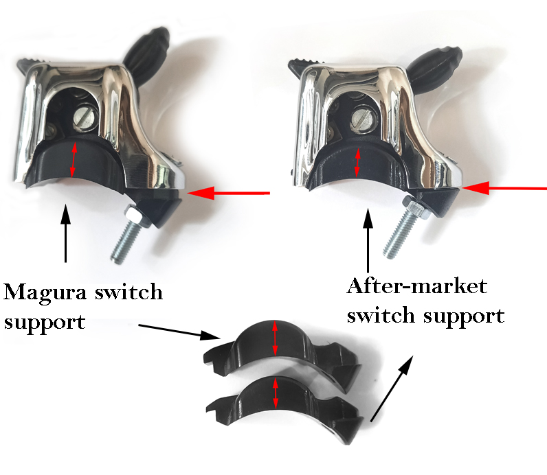 The original Magura switch support is too high, so the switch does not connect properly to the switch support.